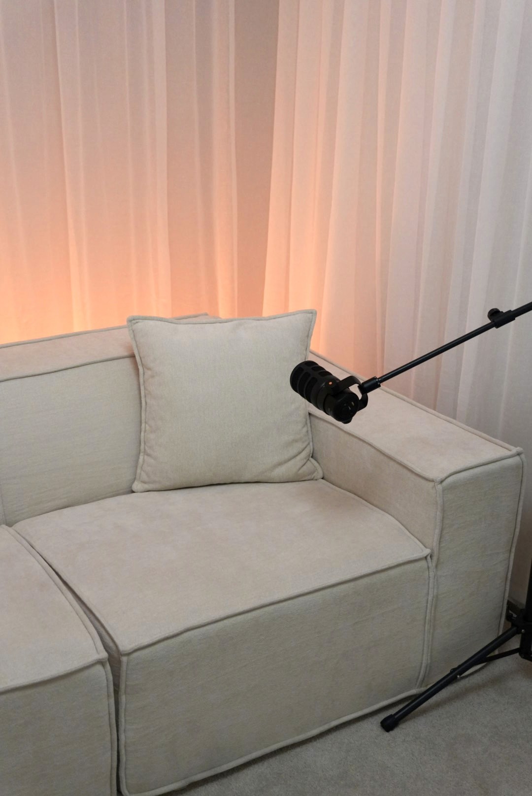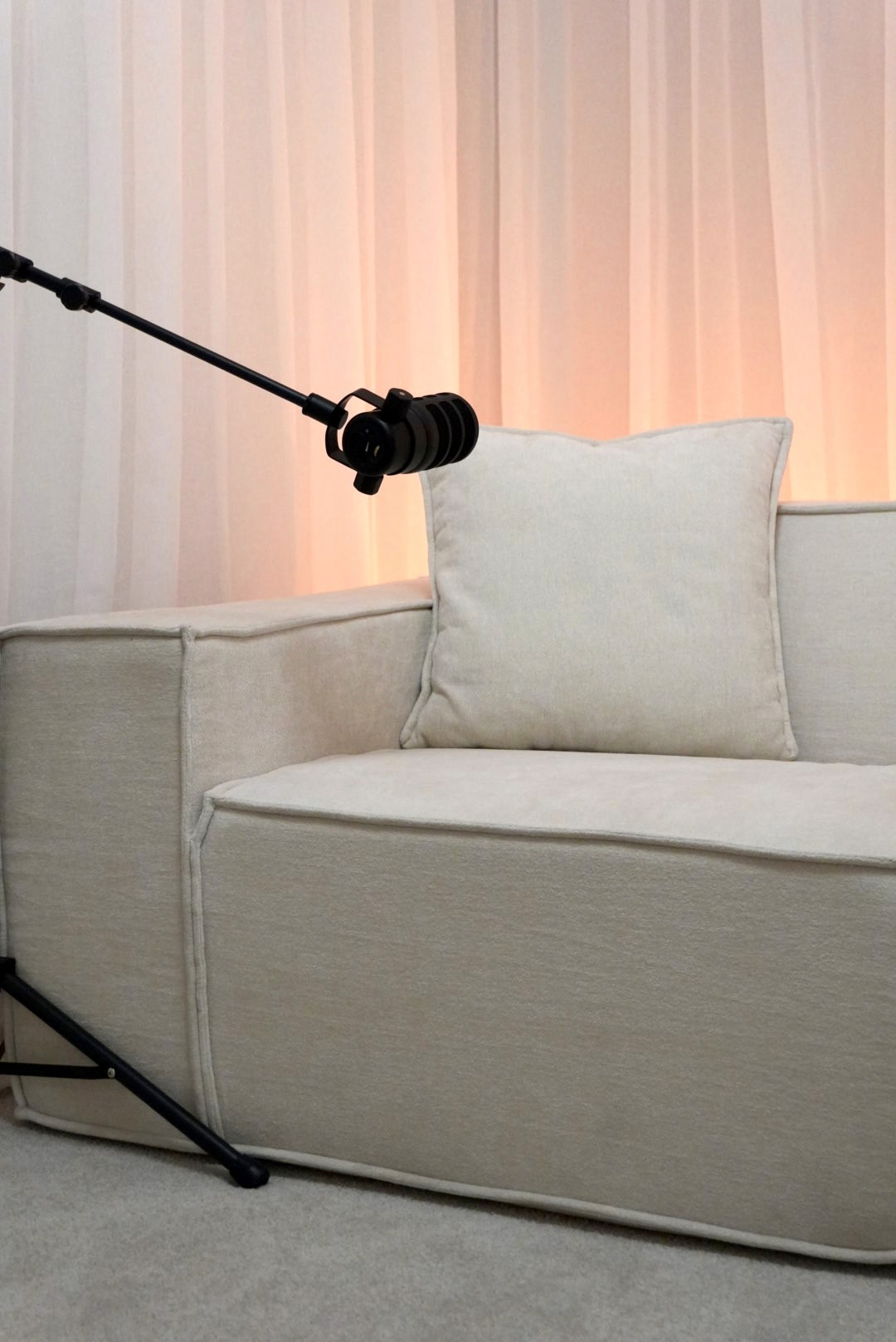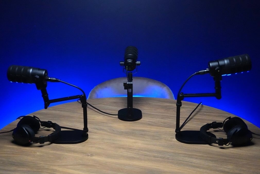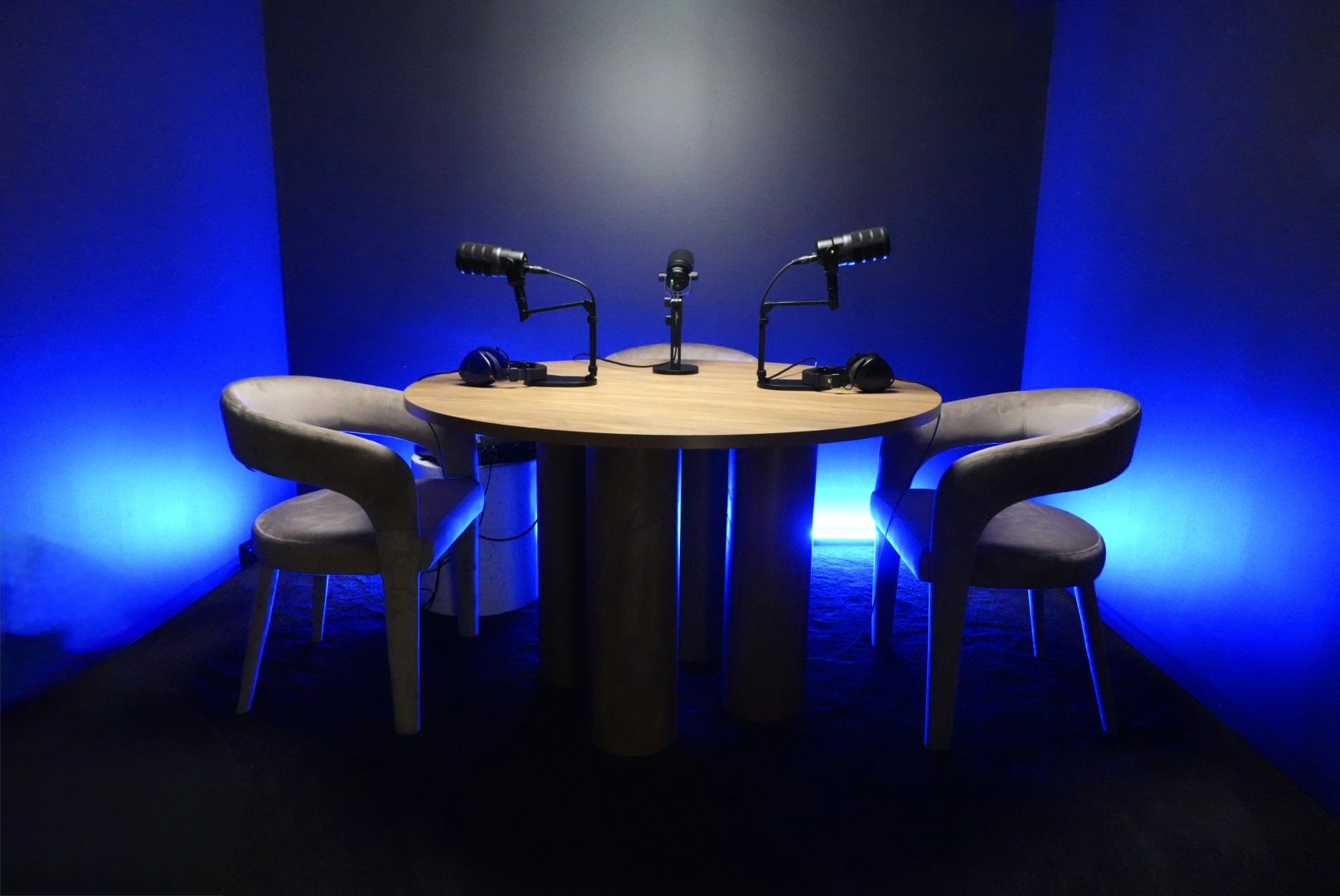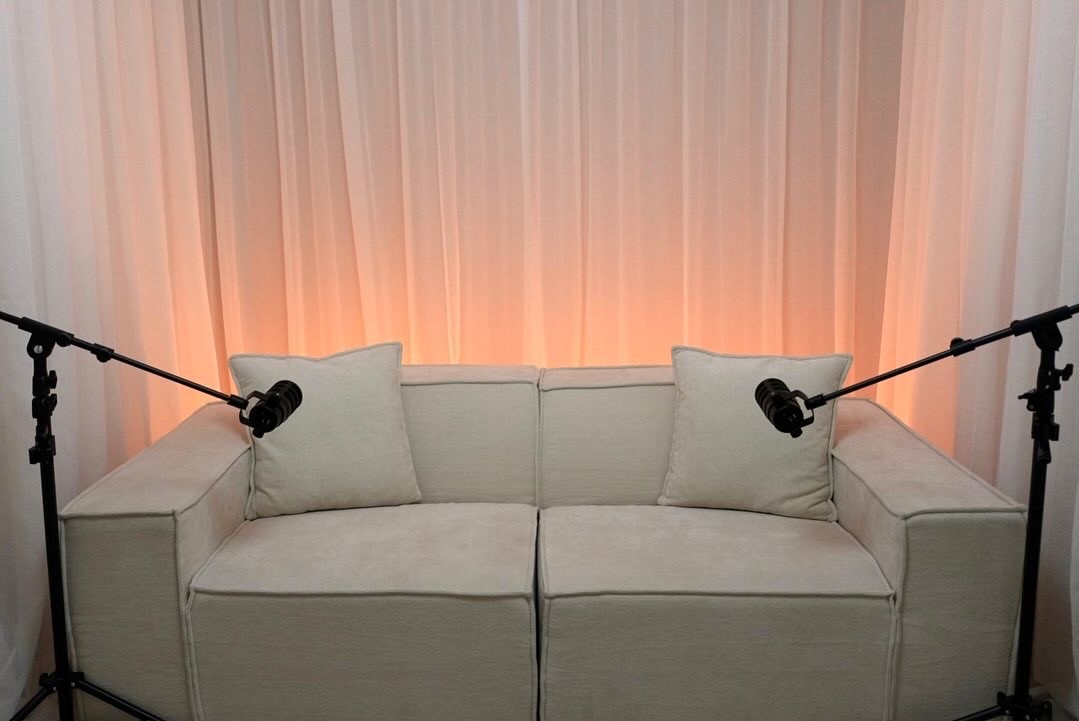 Pod 2 is an inviting and aesthetically pleasing podcasting studio designed for intimate conversations and captivating recordings.