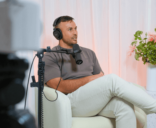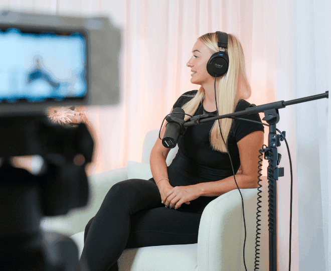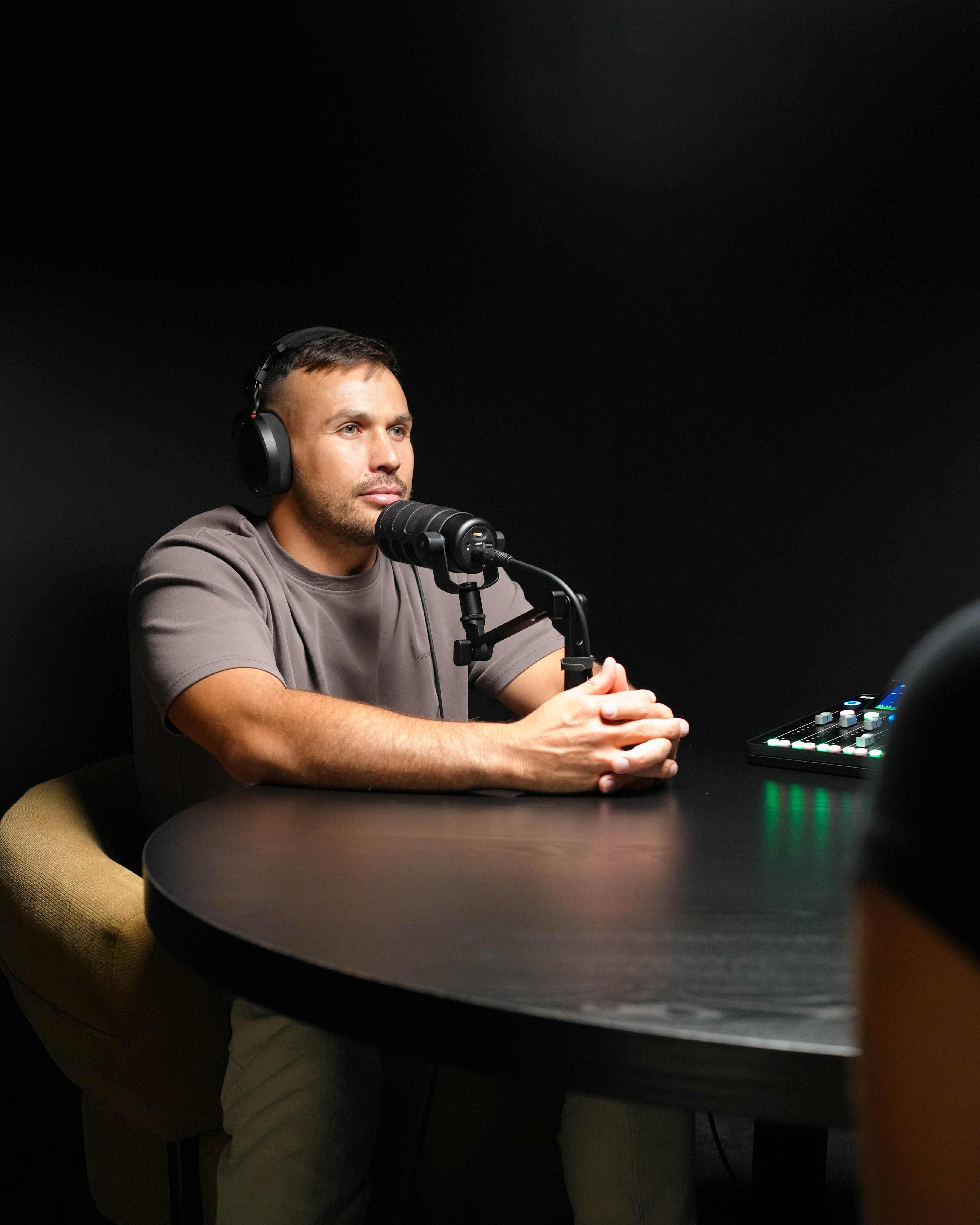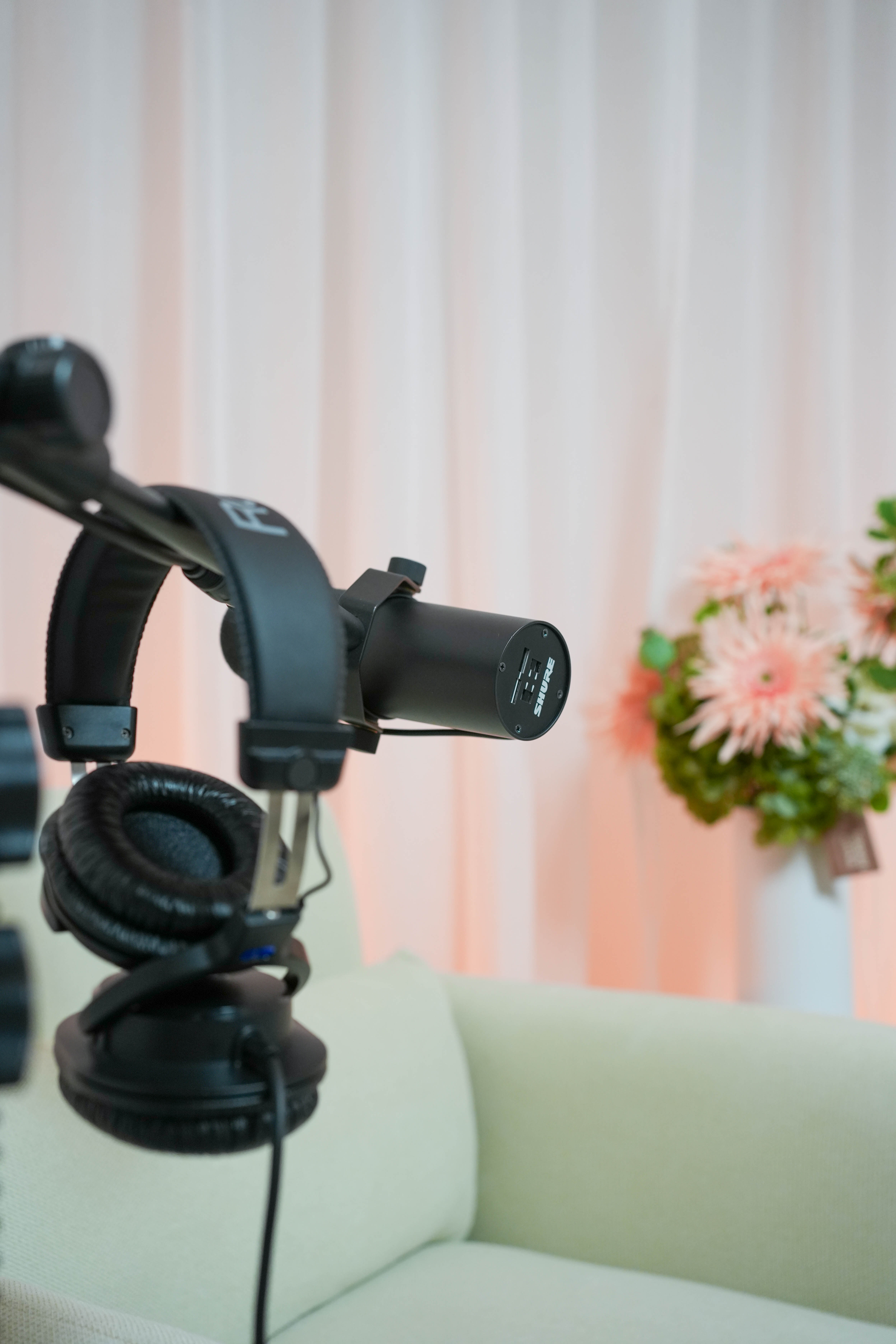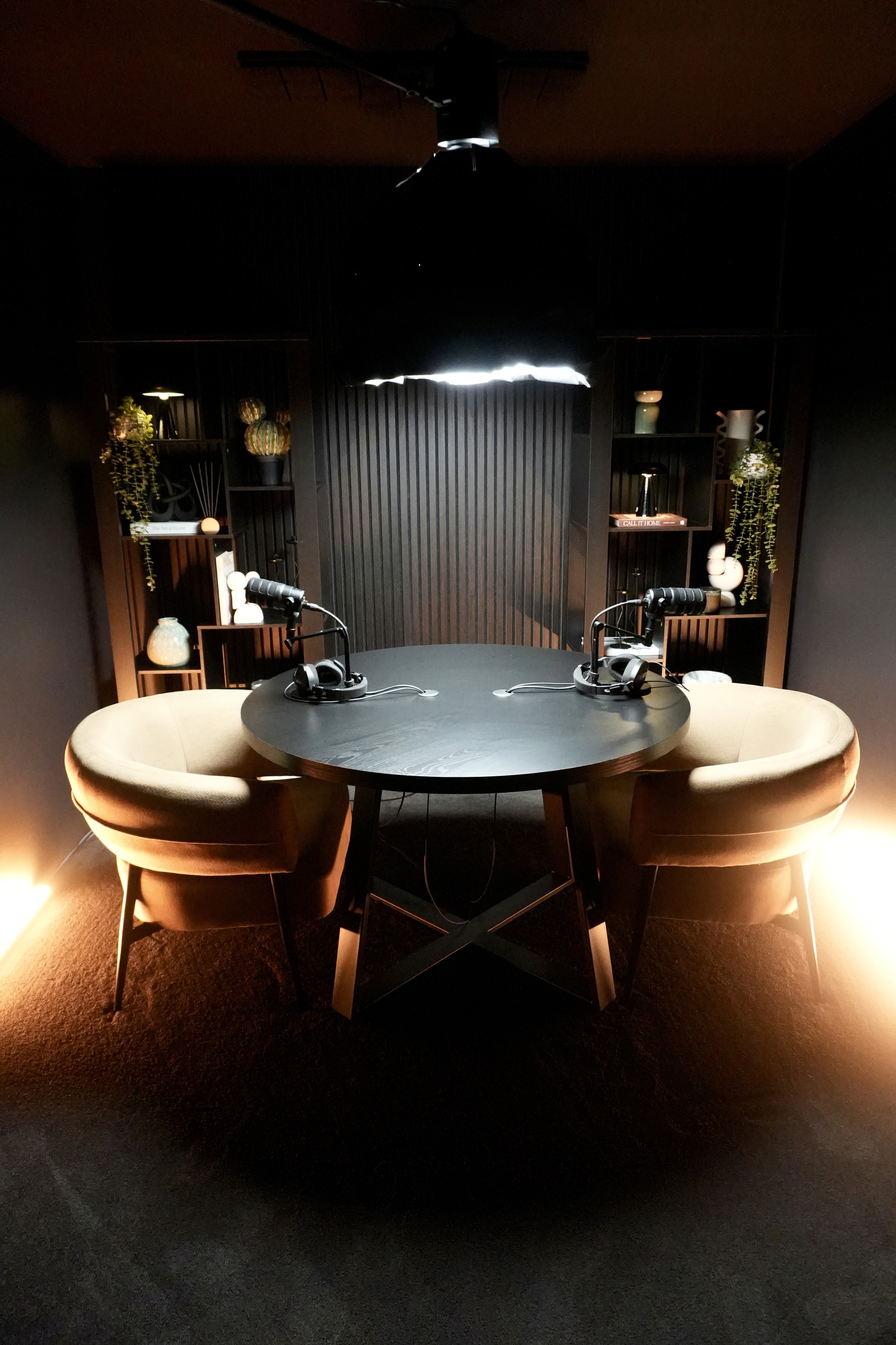 A relaxed podcast session designed for interviews and longer conversations, with more time to settle in and record.